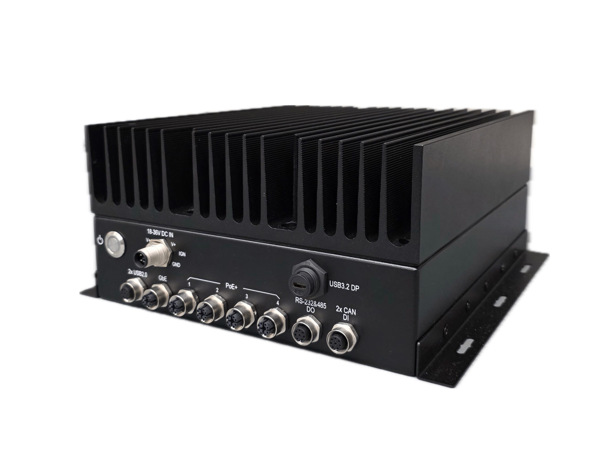 TT310 supports 18V to 36V wide-range DC input with ignition power control, x2 isolated CAN bus ports, an RS-232 port, and an isolated RS-485 port, making it ideal for in-vehicle deployment.